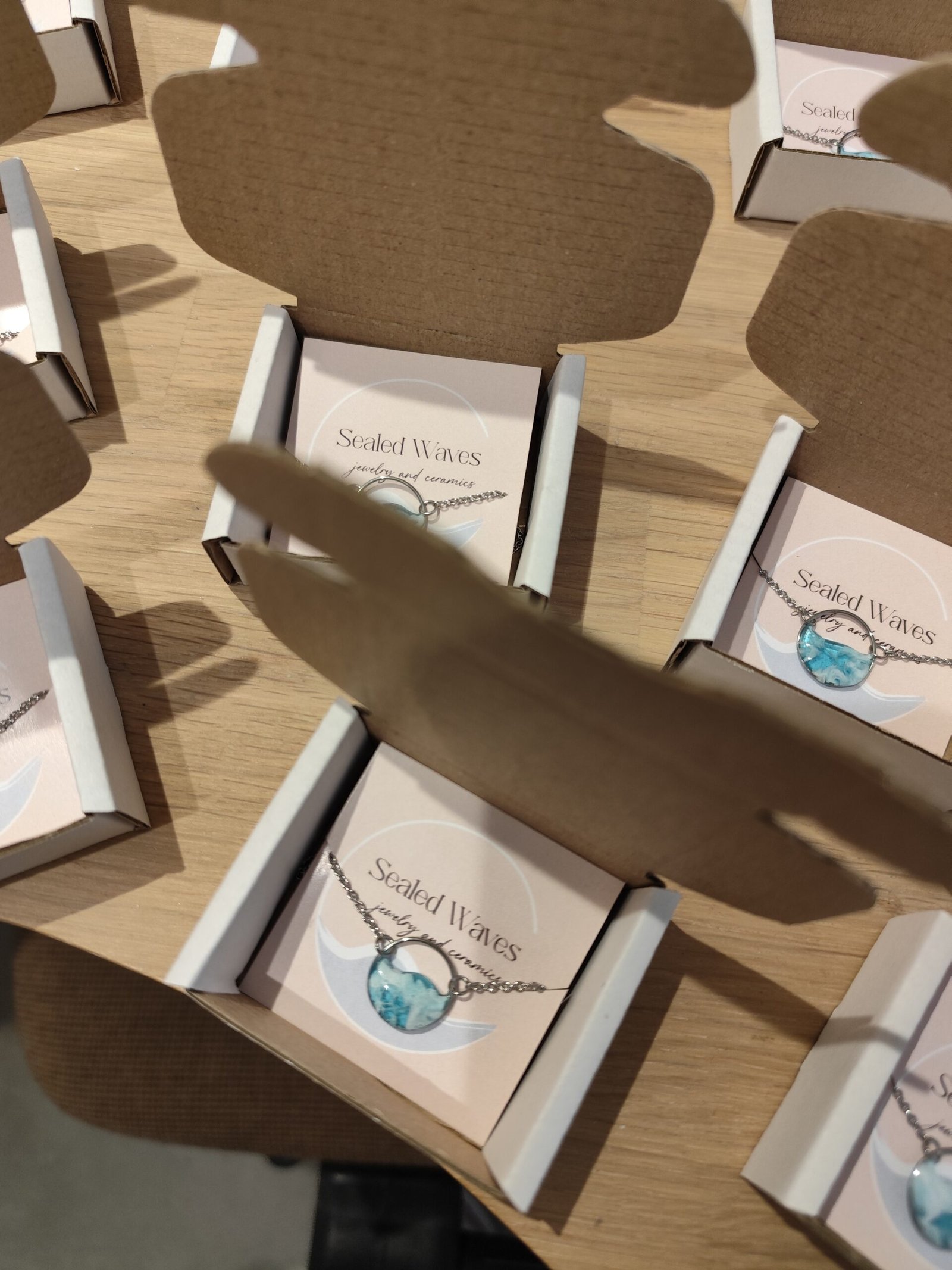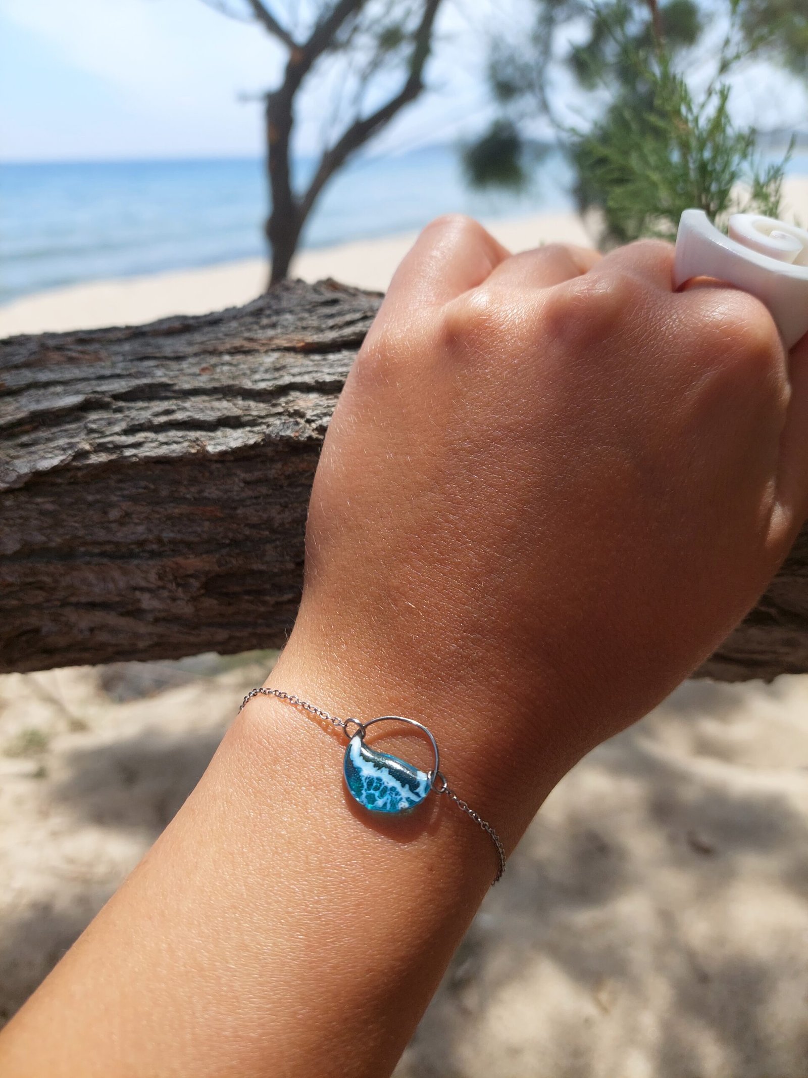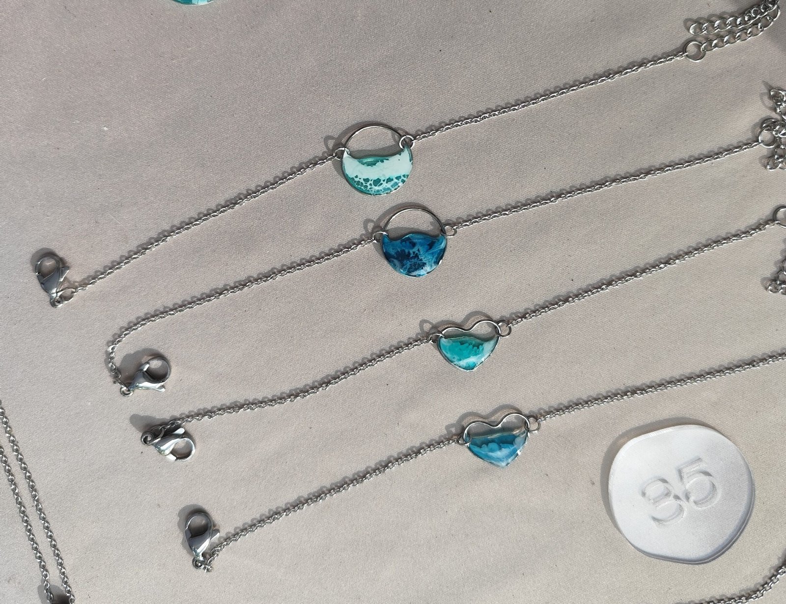 ~ Възможности за цвят на вълната в тъмно/светло синьо и тюркоазено/тъмно зелено, както и правилна или неправилна кръгла форма на медальона