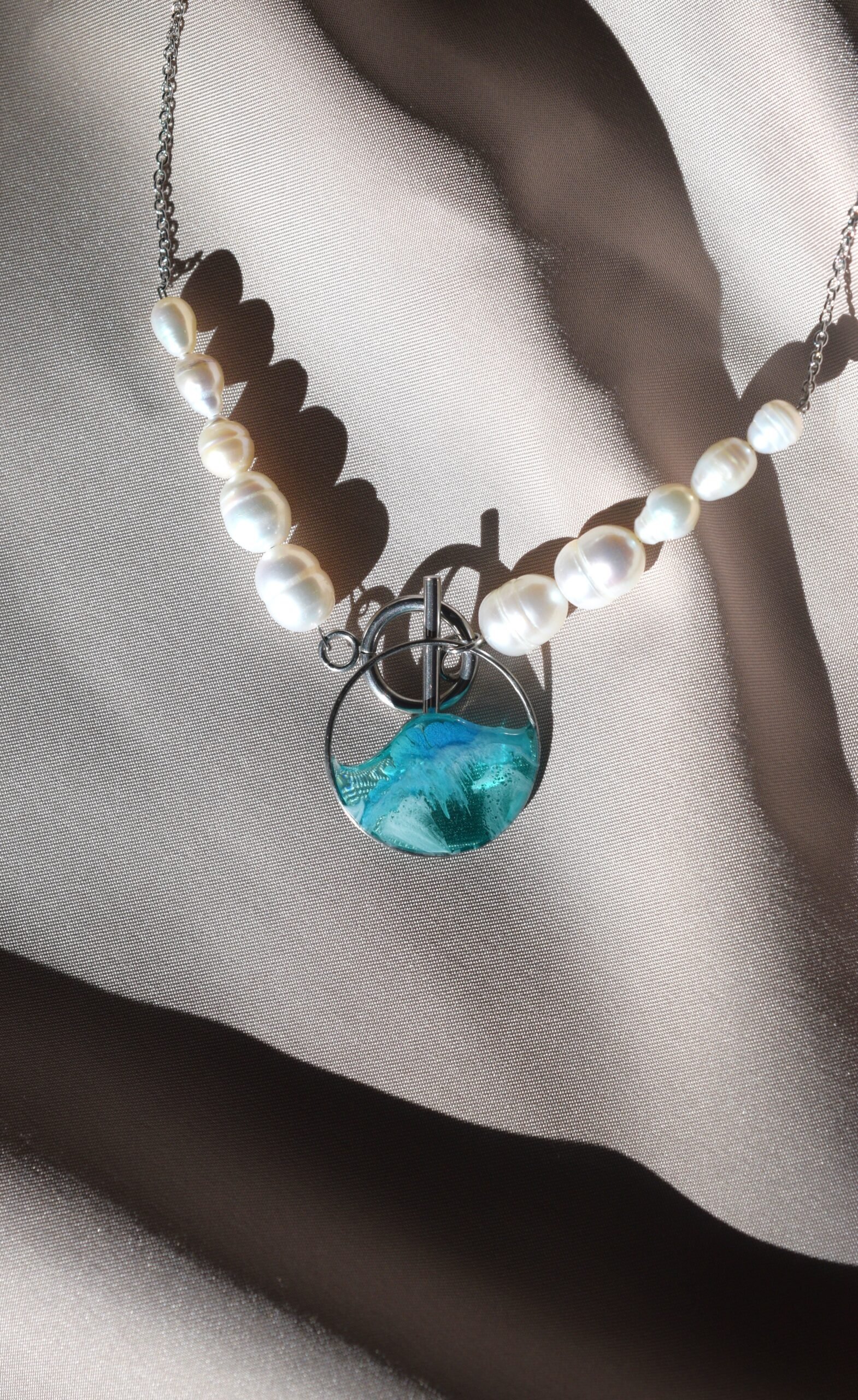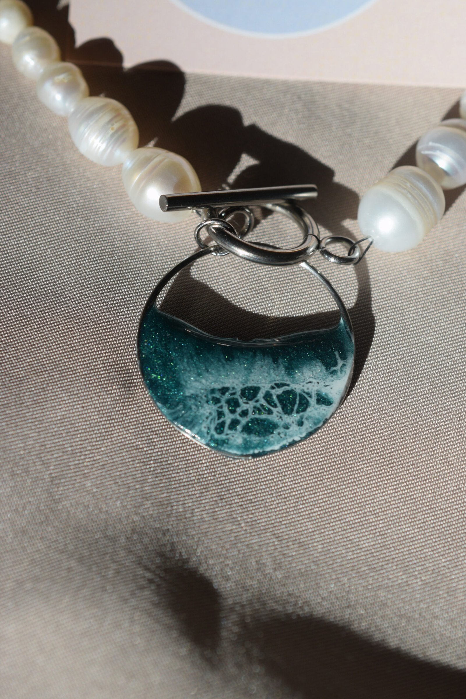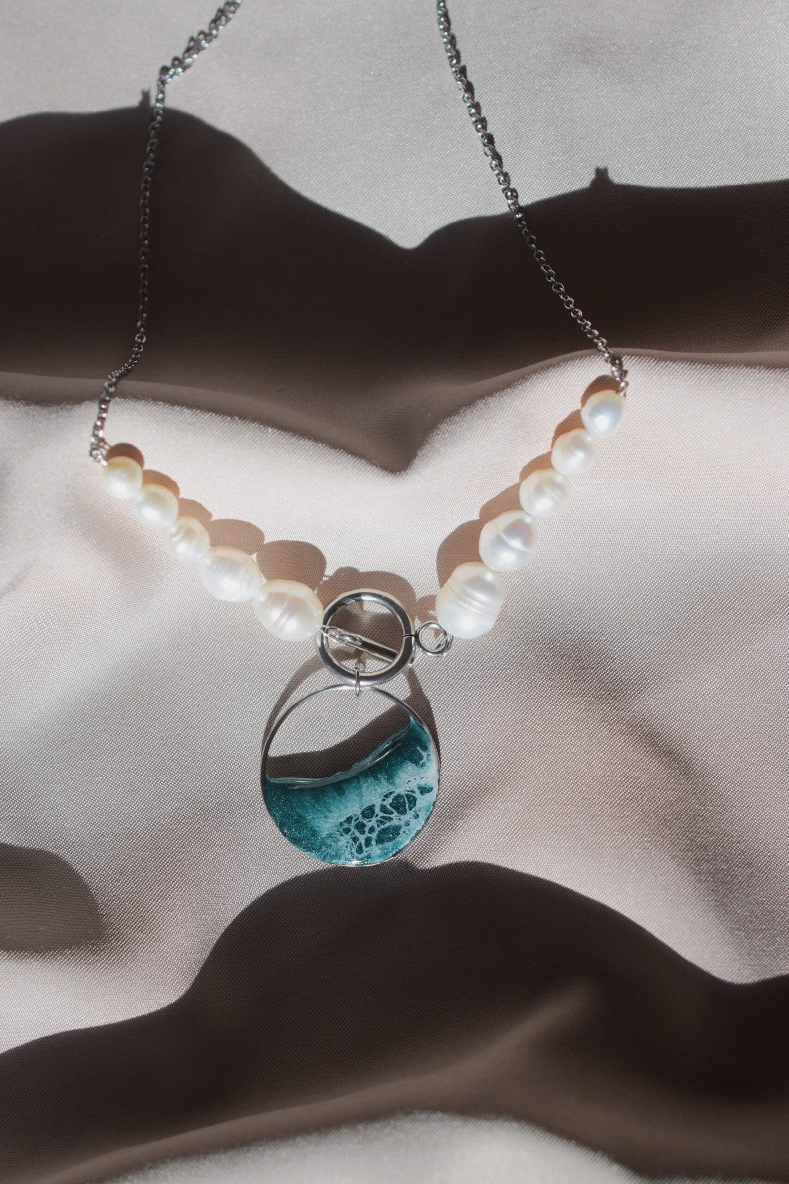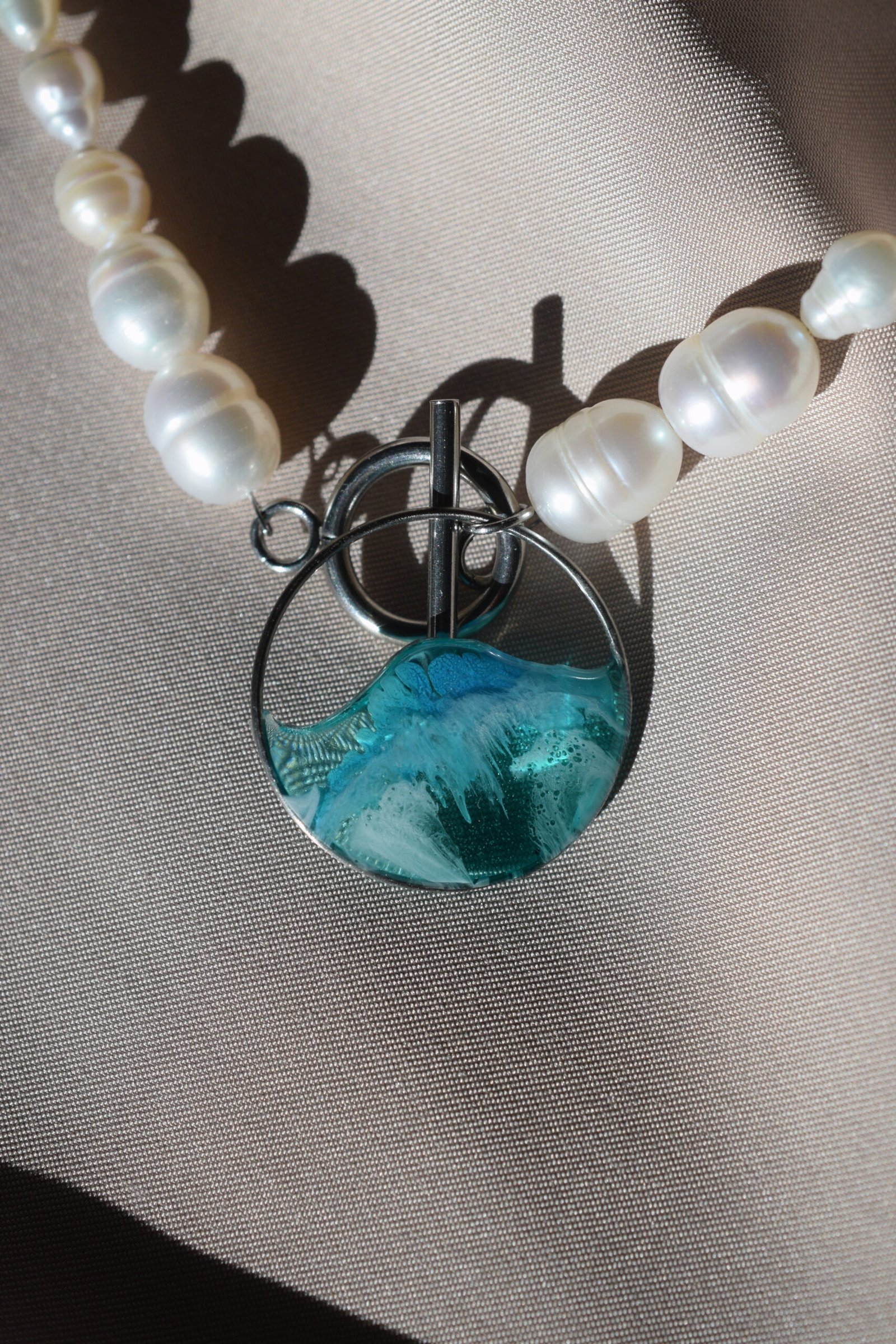 ~ Колие Sealed Waves с верижка от неръждаема и хипоалергенна стомана и естествени речни перли в неправилна форма