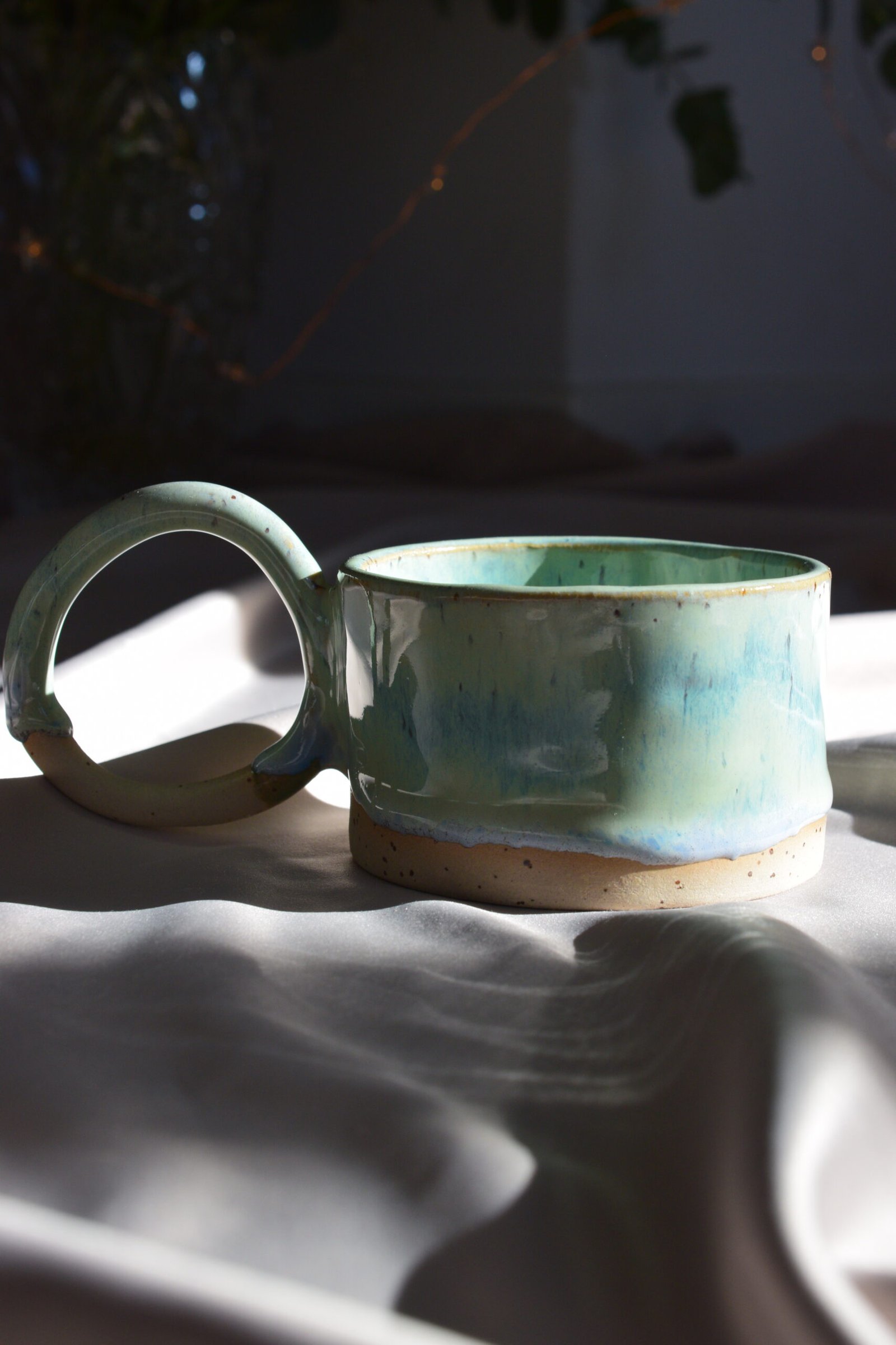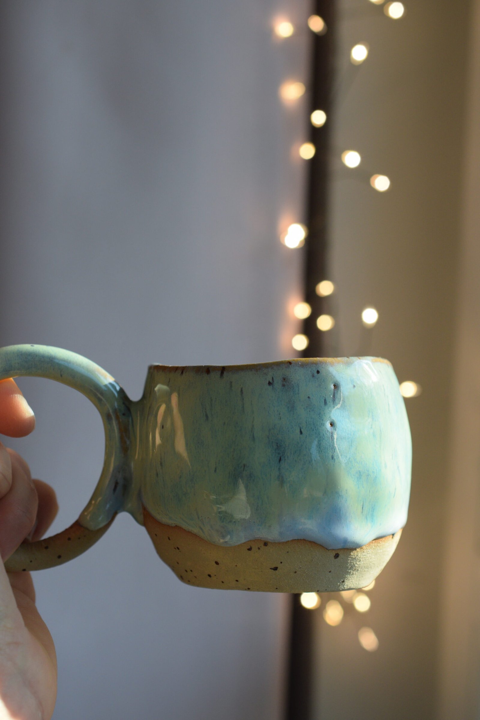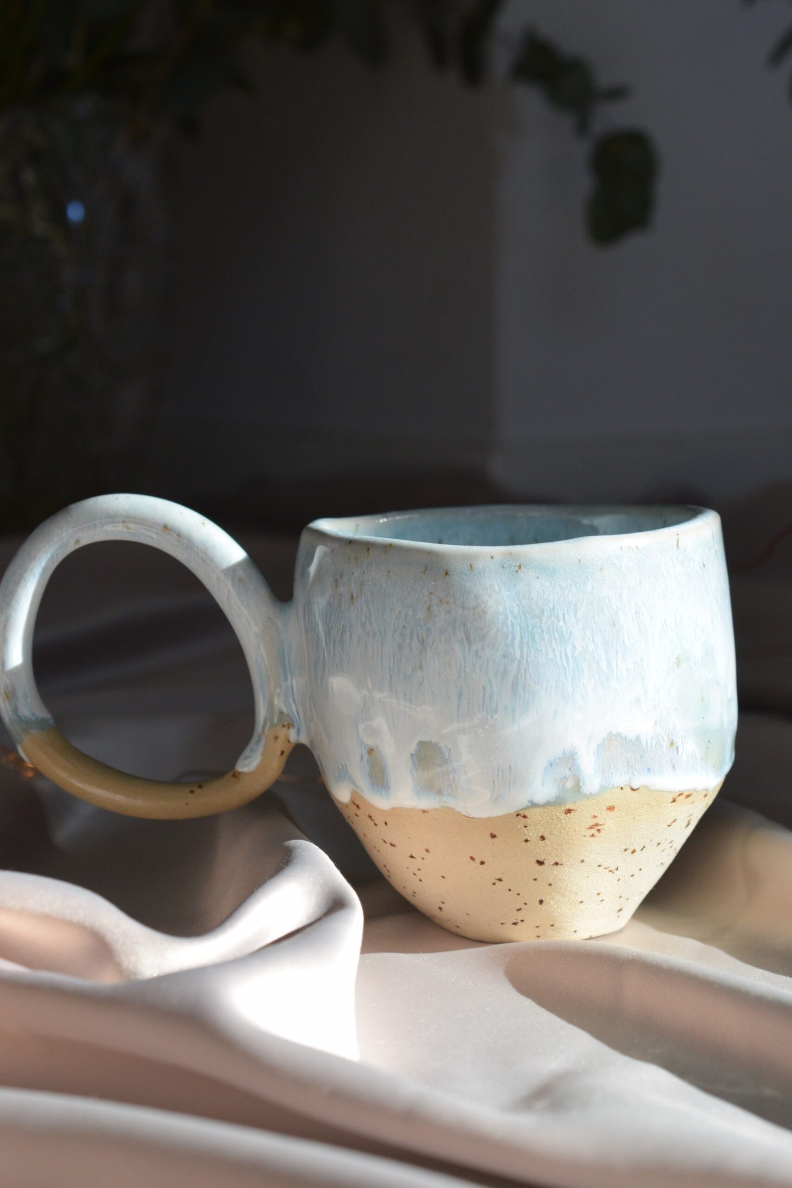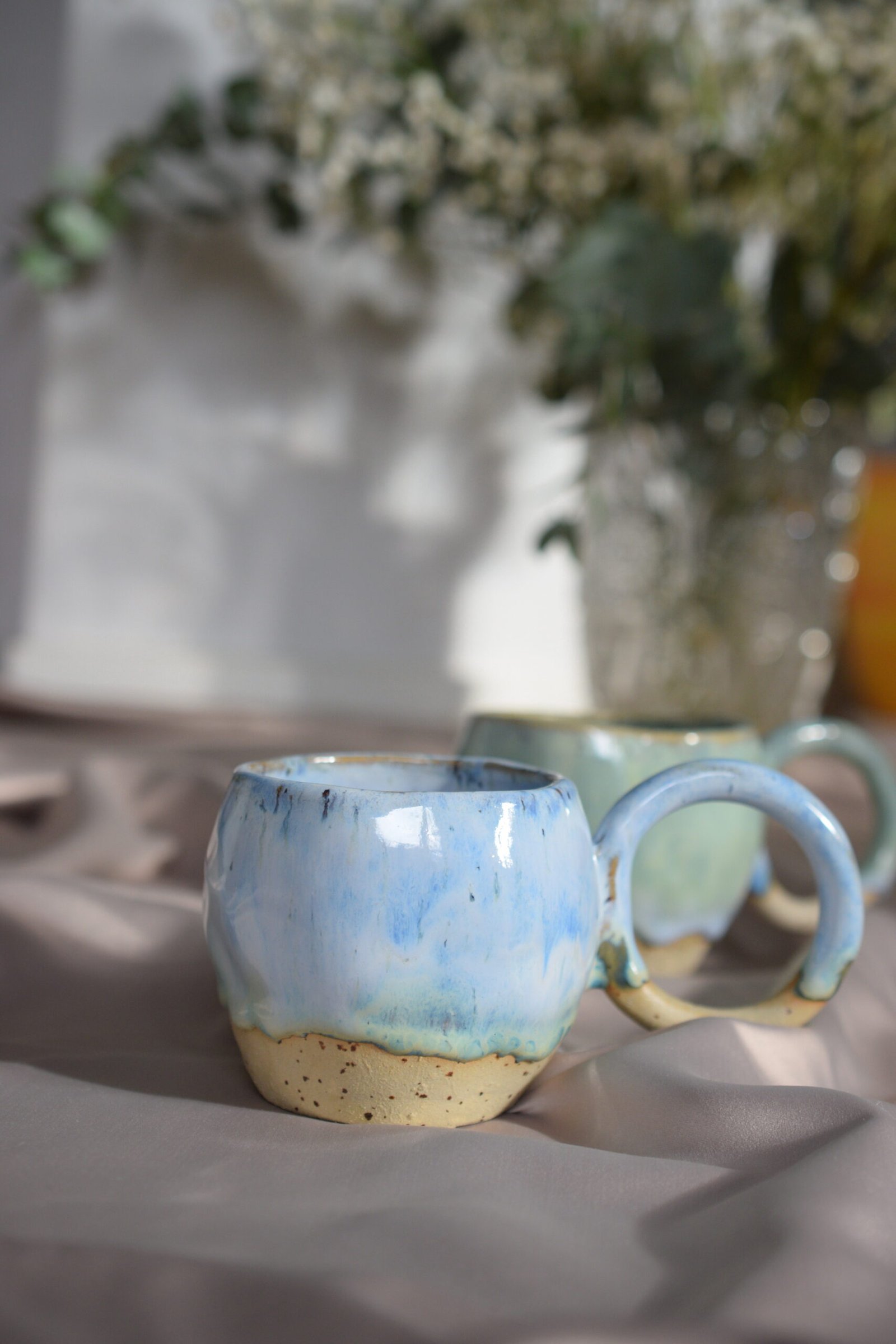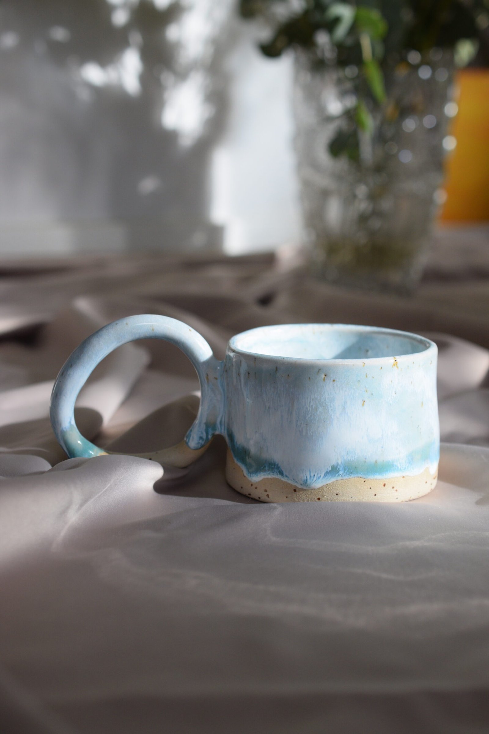 ~ Керамична чаша за еспресо, кафе или чай Sealed Waves с обла форма и с ефект на морска вълна